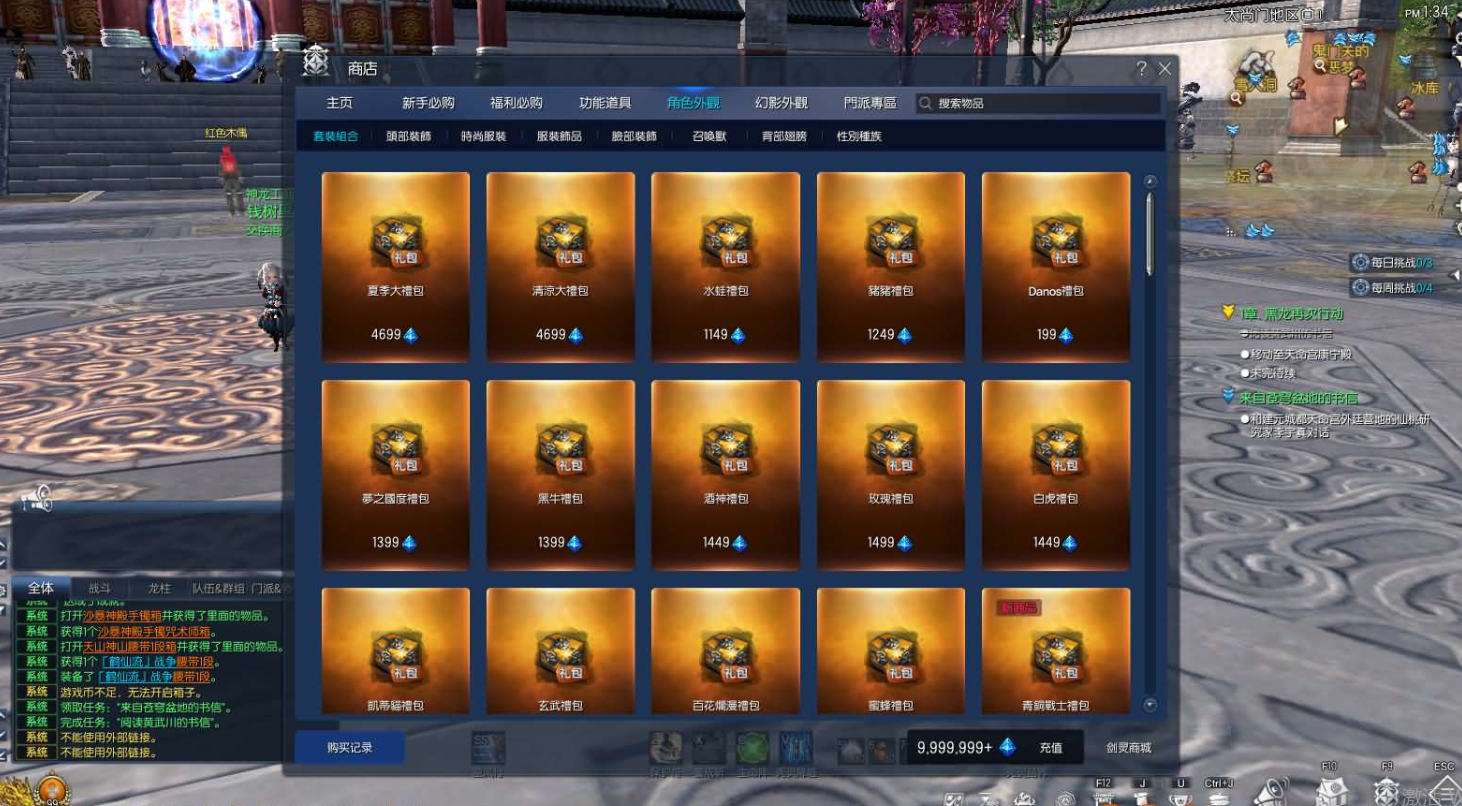 钻石套餐:赠送高速成长大礼包III*1闪耀洪门缘箱子*1+寻宝高级宝箱*5+500000点券